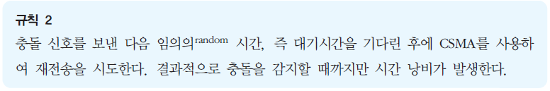 CSMA 프로토콜에 아래와 같은 규칙 추가