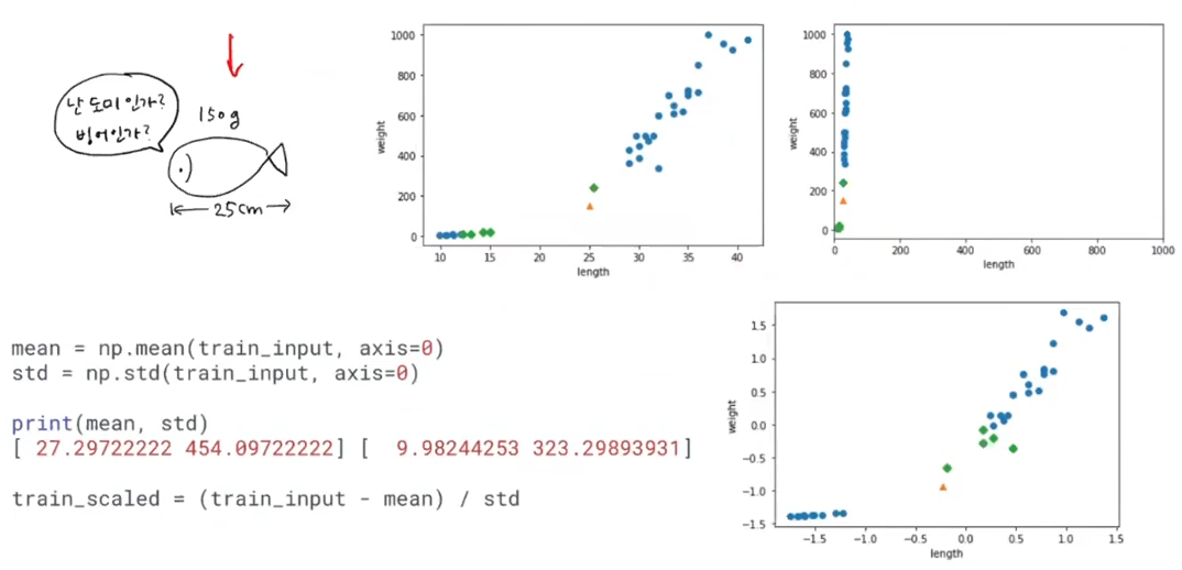스케일을 맞춰서 그래프를 그려보니 최근접이 달라졌다.