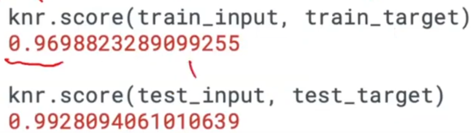 이런 현상을 훈련세트를 적절히 훈련하지 못했다 = 과소적합 했다(underfitting)