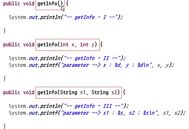 중복 메서드(overloading)를 사용할 수 있는데 반드시 매개변수가 달라야 한다