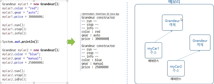 myCar1은 객체 주소만 가지고 있다. 이를 레퍼런스라고 한다.