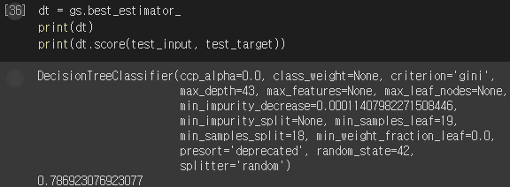 여기서 DecisionTreeClassifier를 구하려고 했으니 그에 best가 나올 것이다.