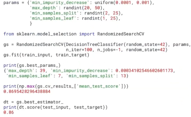 여기서 dt(결정트리)를 만들 때 매개변수를 사용해서 만들 탠데