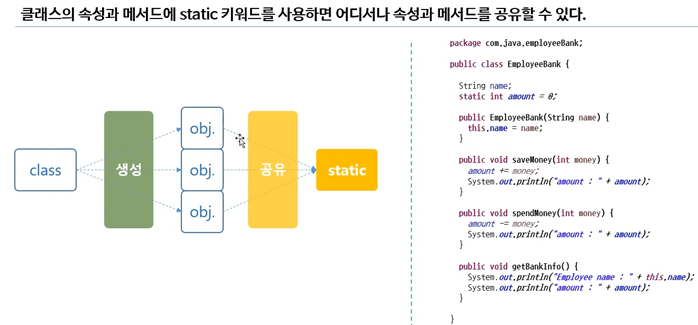 static 키워드는 생성된 객체들끼리 공유할 수 있다.