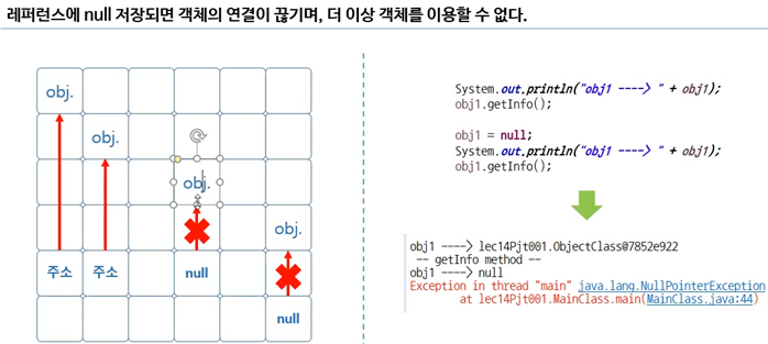 객체를 쓰다 필요없으면 레퍼런스에 null을 넣으면 된다. 그러면 관계가 끊긴 것이다.