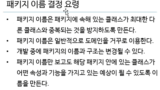 클래스 파일 맨 위에 자기가 속해있는 패키지의 이름은 package 선언후 써준다.