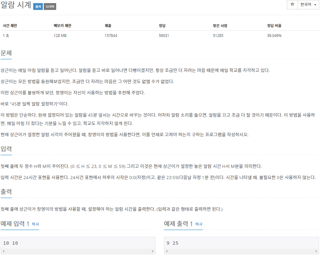 처음에 45분을 포함하고 제출했더니 실패가 떳었습니다. 45분까지는 시간을 변화시키지 않습니다.