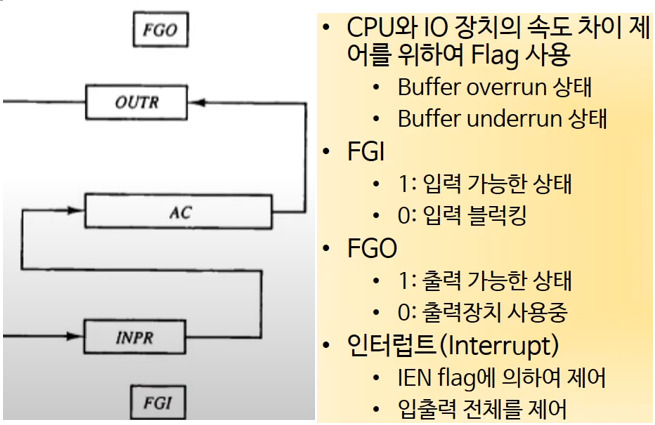 - cpu와 IO장치의 속도차이 제어를 위하여 Flag사용