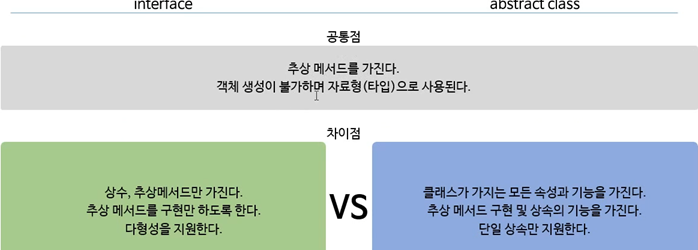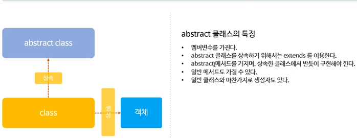 클래스와 달이 객체를 생성할 수는 없으면, 클래스에서 구현해야 하는 작업 명세서이다.