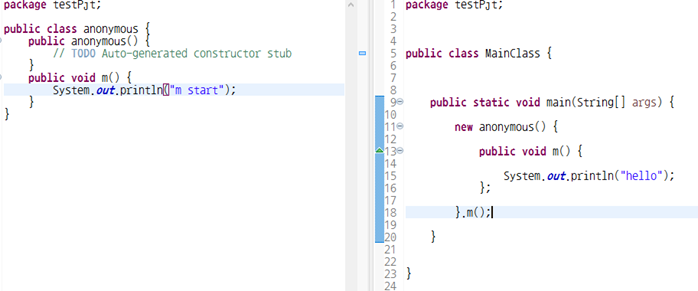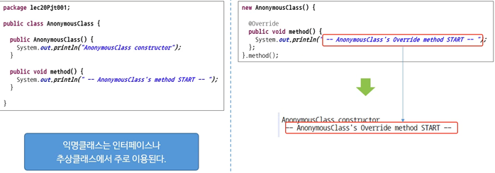 이름이 없는 클래스로 주로 매서드를 재정의 하는 목적으로 사용된다.