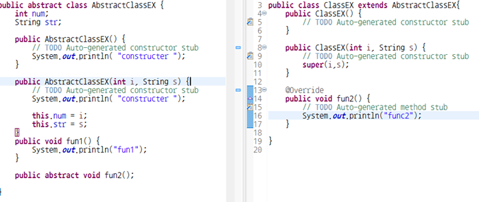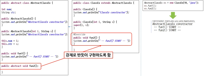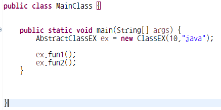 super(i,s)는 상위클래스(AbstractClassEX)의 객체에 매개변수로 받은 i,s로 초기화한다.