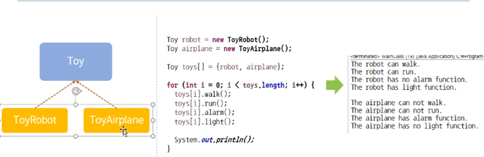 main에서 쓸 때 부모 class 타입으로 자식 클래스의 초기화를 넣는다.