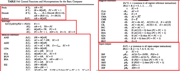 -9개의 레지스터 – AR, PC(12bit짜리 주소 레지스터), DR, AC ,IR, TR(16bit 범용 레지스터), OUTR, INPR, SC(카운터 = 레지스터의 변형)