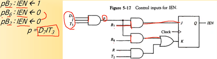 -7개의 플립플롭 – I, S(현재 AC값이 1이냐 0이냐), E(오버플로우 기록), R(인터럽트 여부) ,IEN(인터럽트를 받을지 말지), FGI, FGO