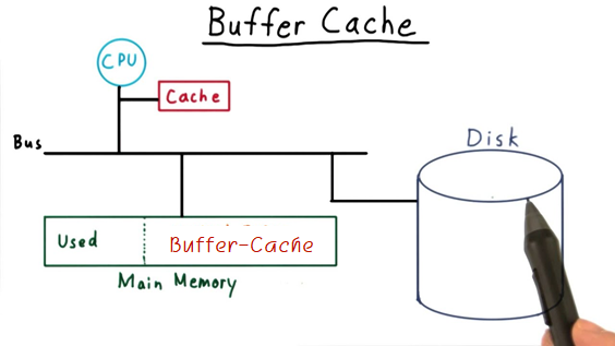 버퍼캐시란? 메인 메모리와 디스크 사이에서 캐시 역할을 하는 겁니다.