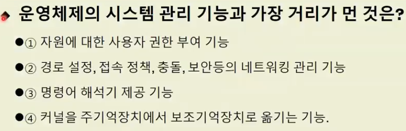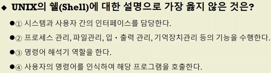 2번 - 이건 운영체제의 자원 관리 기능은 맞다. 근데 쉘의 기능은 아닙니다.