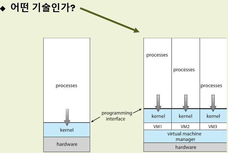 가상 머신 메니저 위에 가상머신들이 있고