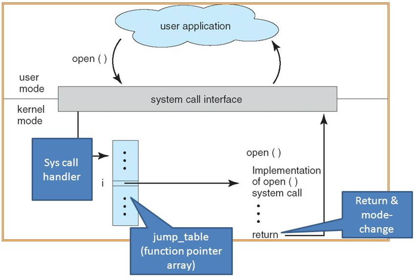 시스템콜 핸들러는 테이블에서 fucntion pointer로 뛰게 해주는 것입니다.