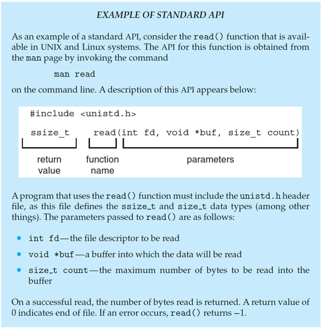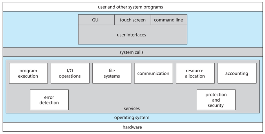 이런 서비스 들은 사용자에게 system calls 인터페이스로 제공됩니다.