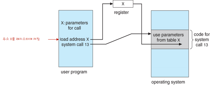매개변수를 메모리에 저장하고 메모리의 주소를 레지스터로 전달