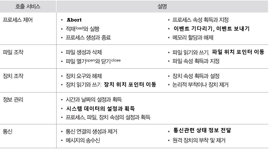 - 우리가 배운 시스템 호출은 다 여기에 속합니다.