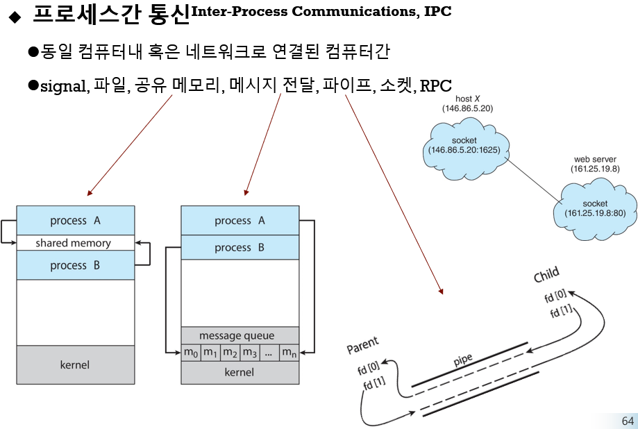 시그널, 파일, 공유 메모리, 메세지를 보낼 수 있습니다.