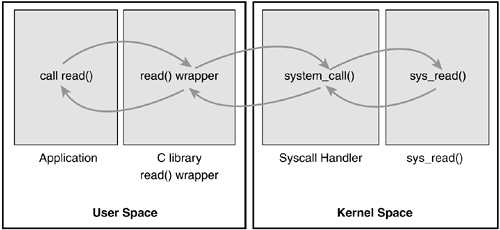 쭉 내려와가지고 시스템 콜을 수행한다음에 다시 돌아갑니다.