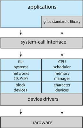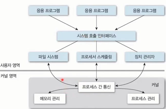 - 네트워크 시스템, 파일 시스템, 장치 관리 등 나머지 대부분의 운영체제 구성 요소