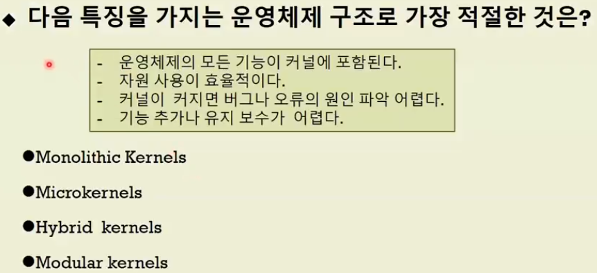 - 커널 크기가 커지면 버그나 오류의 원인 파악 어려움