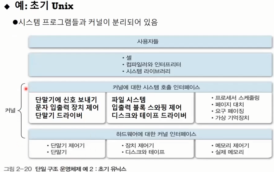 - 운영체제가 점점 커지고 복잡해지면서 순수 단일 구조만으로는 다루기가 어려워진 문제를 해결