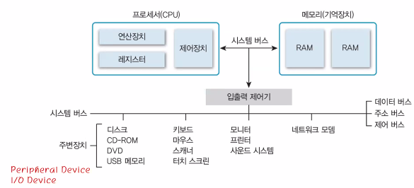제어기를 거쳐서 엑세스 하는 것은 외부 기억장치 입니다.