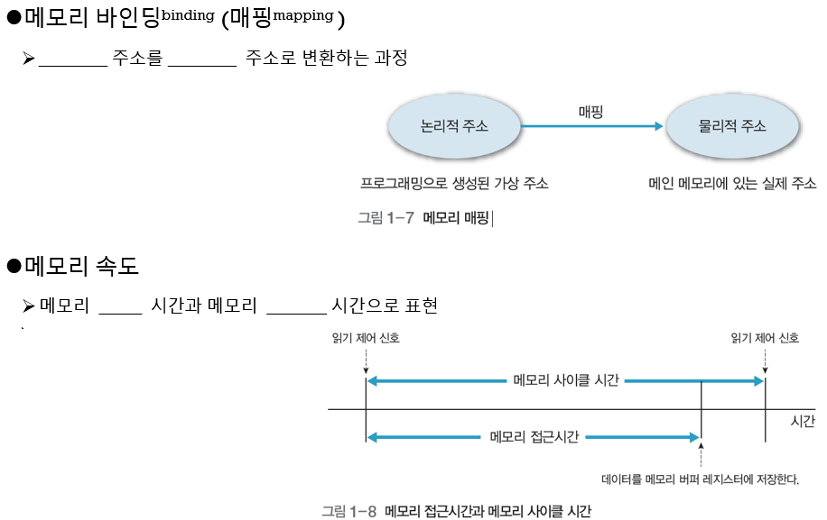 즉, 메모리 사이클시간은 메모리 접근시간 + 준비시간이다