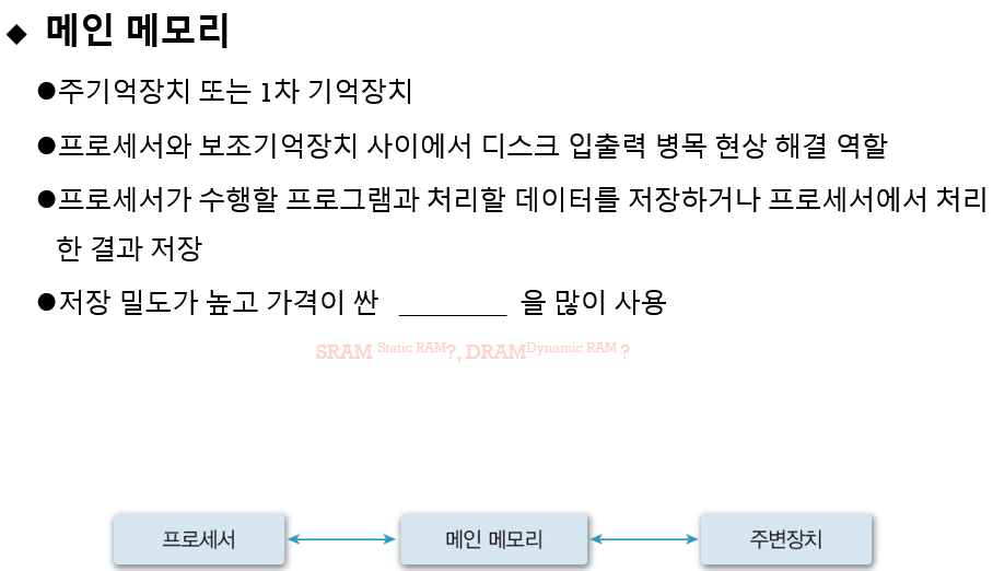 메인 메모리로 Sram을 사용하냐? DRAM을 사용하냐? 뭐가 맞을까요?