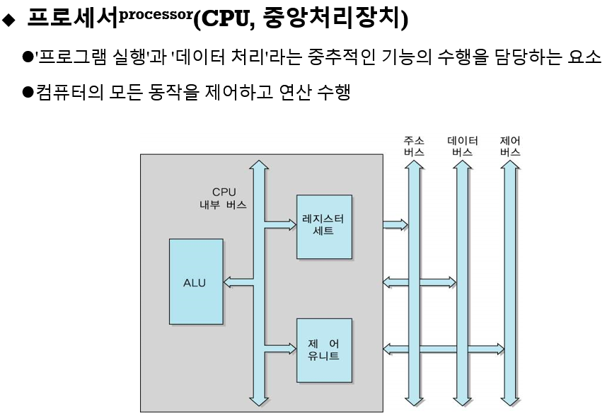 연산장치(ALU), 레지스터, 제어장치(유니트) 가 있습니다.