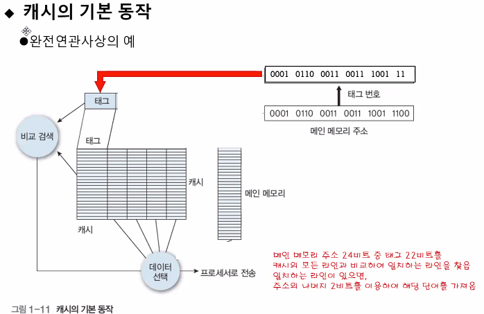 그 워드를 캐시 메모리에 있는 태그와 비교합니다.