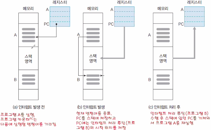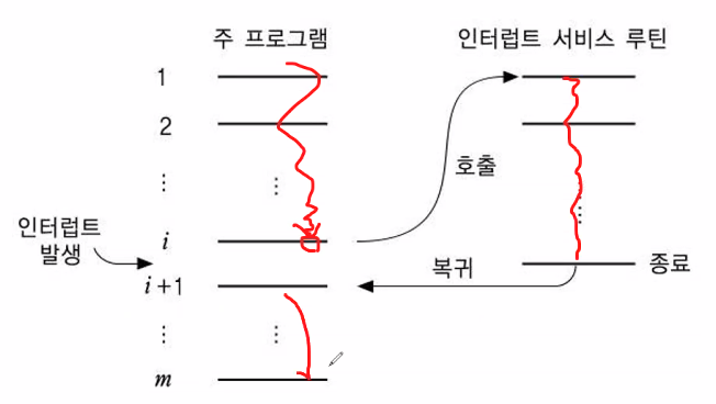프로그램을 실행하다가 인터럽트 서비스 루틴을 실행하고 다시 프로그램에 오는 것 입니다.