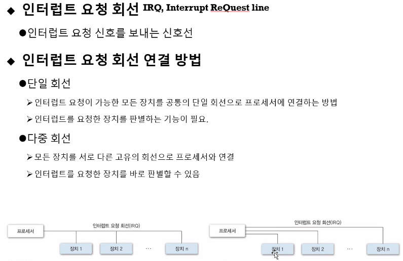 인터럽트를 보내는 회선을 인터럽트 요청 회선이라고 합니다.