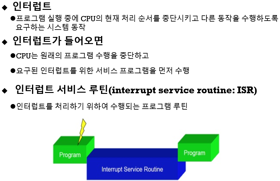 인터럽트는 프로그램 실행 중에 CPU의 현재 처리 순서를 중단시키고