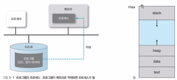 디스크에 있는 프로그램이 실행될 때 메모리에 올라옵니다.