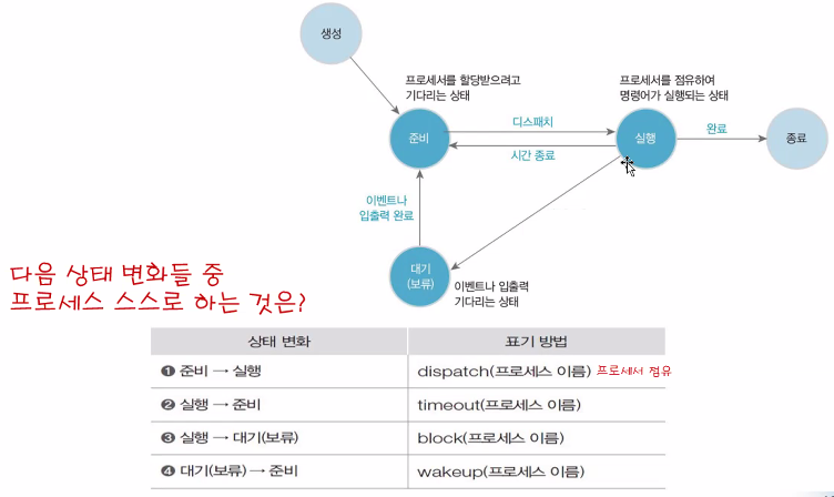 - 디스패치 = cpu에 올려놓는 것, cpu를 점령하는 것