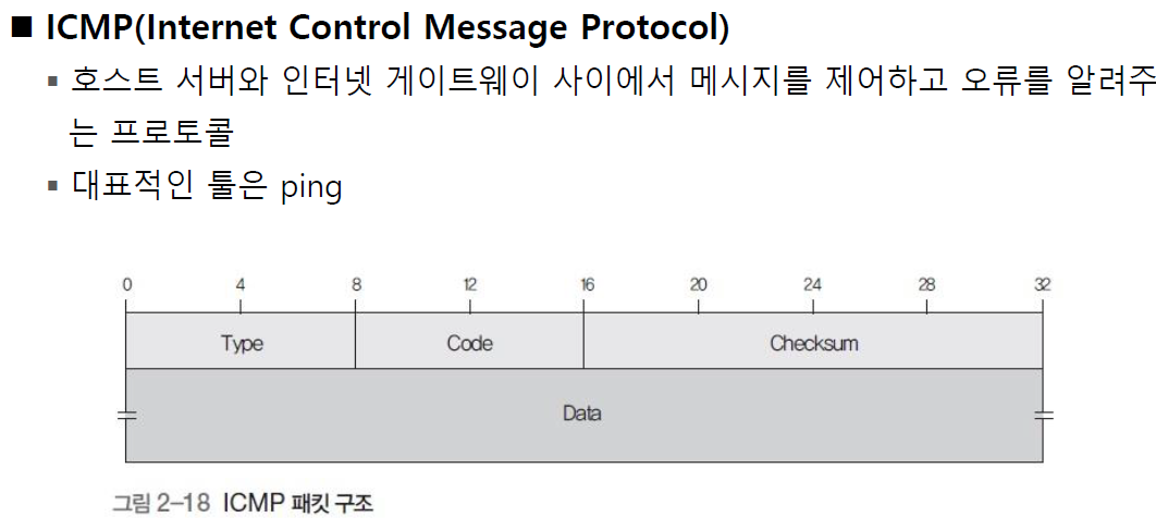 ICMP, IGMP는 3계층이지만 위 언저리 있기 때문에 프로토콜 필드에 있습니다.