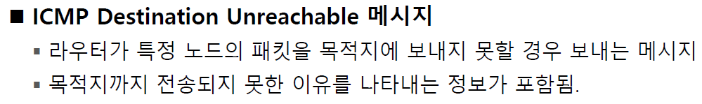 라우팅에 실패한 경우(목적지가 없다, 도달할 수 없는 경우)