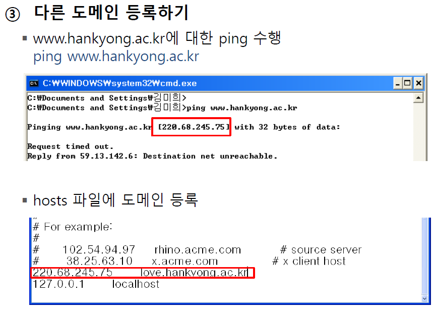 필요한 경우 ip와 도메인네임을 매핑해서 쓰면 내 시스템에서 이름을 가지고 접속 할 수 있습니다.