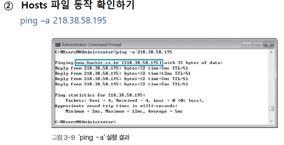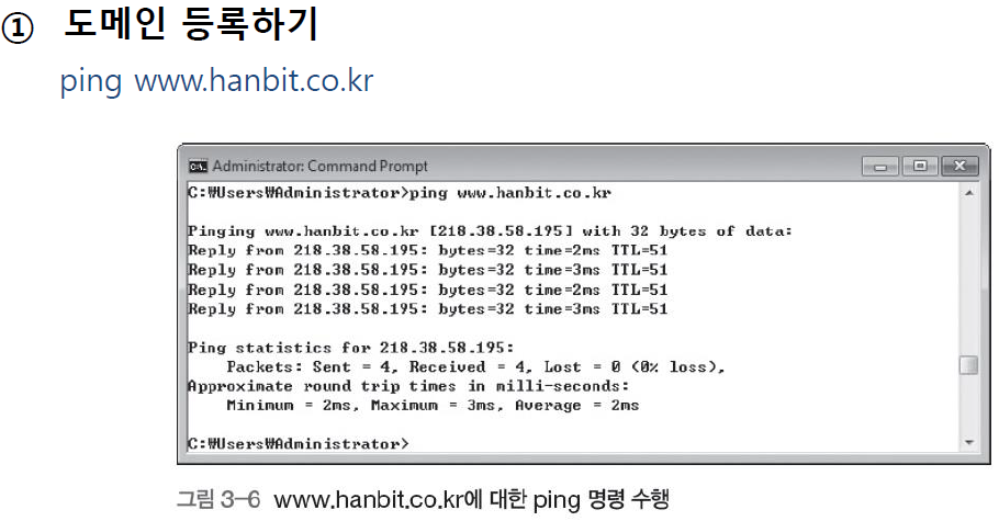 그러고 나서 ping hanbit을 사용해서 동일한 ip를 받을 수 있습니다.