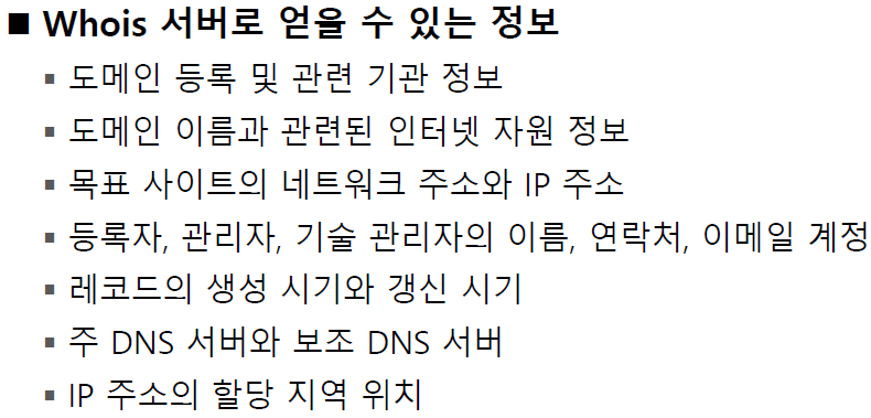 whois에서 알 수 있는 정보를 찾아 볼 수 있습니다.