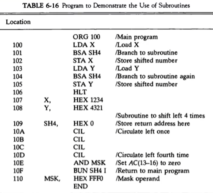 BSA SH4 –> 서브루틴 콜, SH4로, 프로그램 카운터는 102로 되어있다 그러면 102의 주소가 SH4시작 주소에 저장하게 된다.