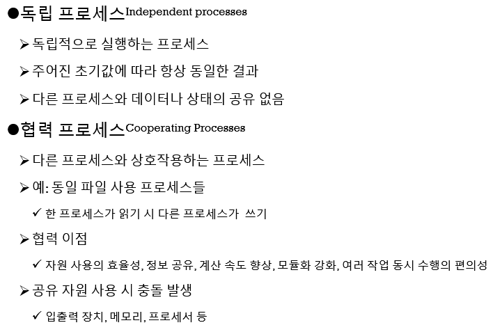 다른 프로세스가 읽은 것을 쓰는 협력 프로세스가 있을 수 있습니다.