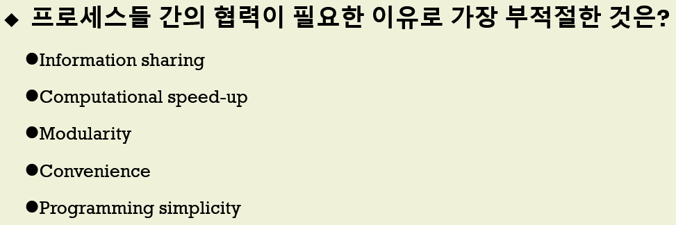 협력 프로세스는 스레드와 비슷한 것인데 여러 작업을 동시 수행합니다.