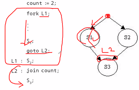 S1을 먼저하고 fork를 하는데 L로 나눕니다.