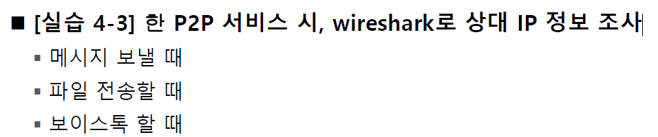 [실습 4 - 3] 한 P2P 서비스 시 , wireshark 로 상대 IP 정보 조사